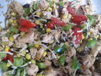 Then after that I made Cilantro Chicken Salad from a Homemade Gourmet mix. I LOVE Homemade Gourmet. We actually had some of this left when we got back. So Sunday night because it has no mayo or yogurt in it but is just fresh tasting. I took some of the leftovers and through them on a rice crust cheese pizza and put a little more mozarella on top. It is yummy yummy yummy.