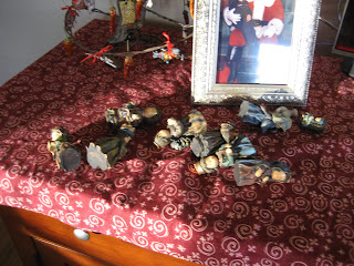I asked my son why his Mary and Joseph are always laying down. he smiled at me and said. “Well Mom there was a twister.” Apparently this week we had bad weather here in the house as well as all the stomach flu. haha. But they are his so I try only to right them to standing position about once a day.