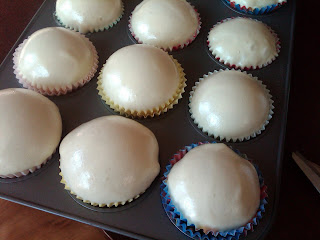So here is the first step of my quest to make fake cupcakes for my cupcake wrappers. Super easy I just sprayed the goopy stuff in and let it sit. It expanded itself into a perfect dome. To do again and I may try another dozen just to use up the can and have a practice batch for frosting, but to do again I may not fill as much. So this step fairly painless. Because I don't eat cakes often. I don't bake nor frost often. So frosting seems a little worrisome. But we shall see how it goes. Spackle for frosting with paint to tint it. Fun stuff. Just had to share the first step.
